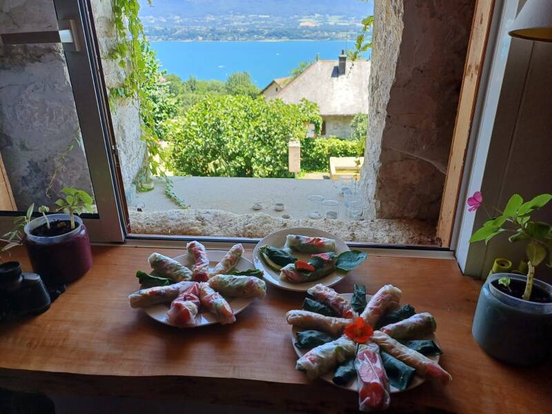 - Accueil et cueillette en pleine nature : Plantes sauvages comestibles, fleurs, légumes du potager selon la saison et le thème de l'atelier.